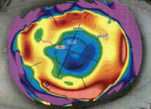 Figure 2. Anterior corneal topography showing irregular astigmatism.