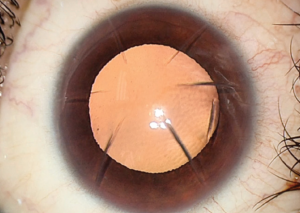 A trial with a rigid gas permeable contact lens can be a great way of assessing the visual potential of an eye with irregular astigmatism. If there is a significant improvement over the spectacle refraction, then the implantation of an IC-8 is likely to be beneficial. Of course, a trial is not possible in the setting of cataract opacity.